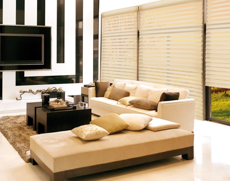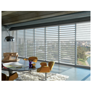 Alternativa elegante y sofisticada para ambientes de alto diseño, está compuesta por franjas opacas que se extienden de manera horizontal y cuelgan entre dos velos traslucidos; siendo las únicas cortinas que brindan nitidez absoluta en el contacto visual con el exterior debido a su diseño.