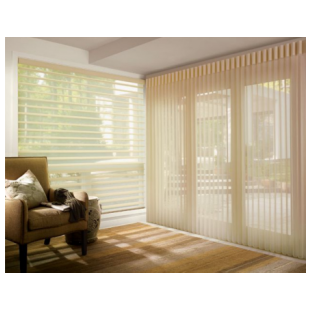 Combinación perfecta entre lo clásico y moderno que ofrecen las cortinas de doble función. Ideales para cubrir puertaventanas o ventanales grandes. La sheer vertesse consiste en una tela traslucida de forma ondulada que se complementa con tiras verticales opacas cuyo accionamiento permite la rotación de estas, logrando controlar el paso de luz y visibilidad de los espacios.